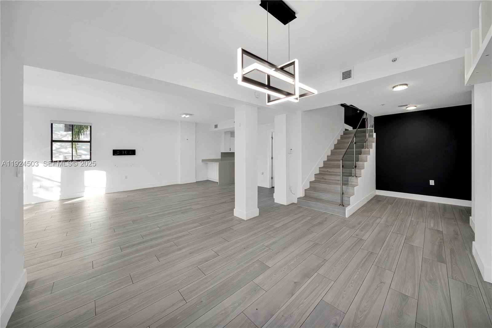 🌴sleek modern finishes, including a contemporary glass stair railing