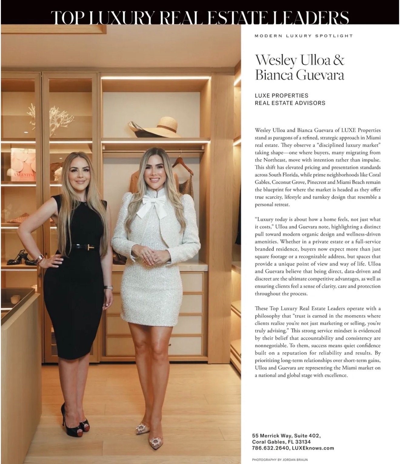 Another milestone for LUXE. ✨ Wesley Ulloa & Bianca Guevara have been recognized in @modernluxury’s Top Luxury Real Estate Leaders issue, a prestigious feature highlighting the professionals shaping the future of the luxury real estate industry.